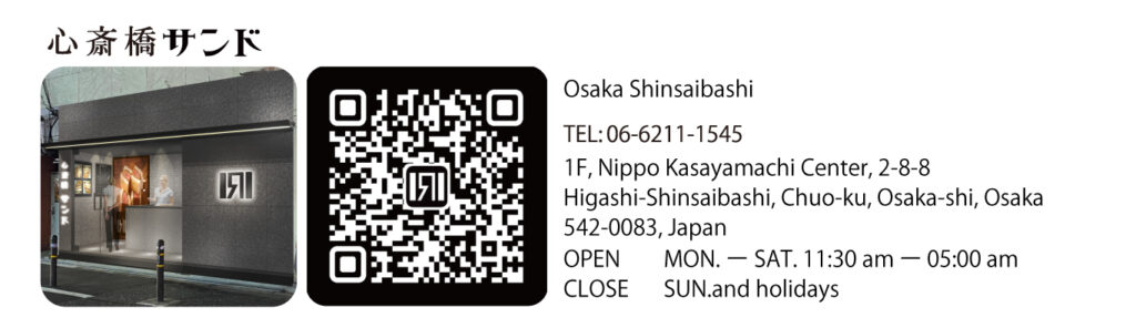 Opened 【ShinsaibashiSand】 in Tamayacho, Higashi-Shinsaibashi, Osaka.