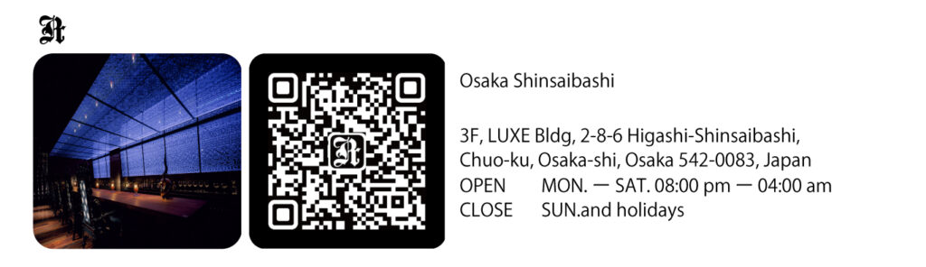 Opened 【BAR R】, a fully membership-only bar, in Kasayacho, Higashi-Shinsaibashi, Osaka.